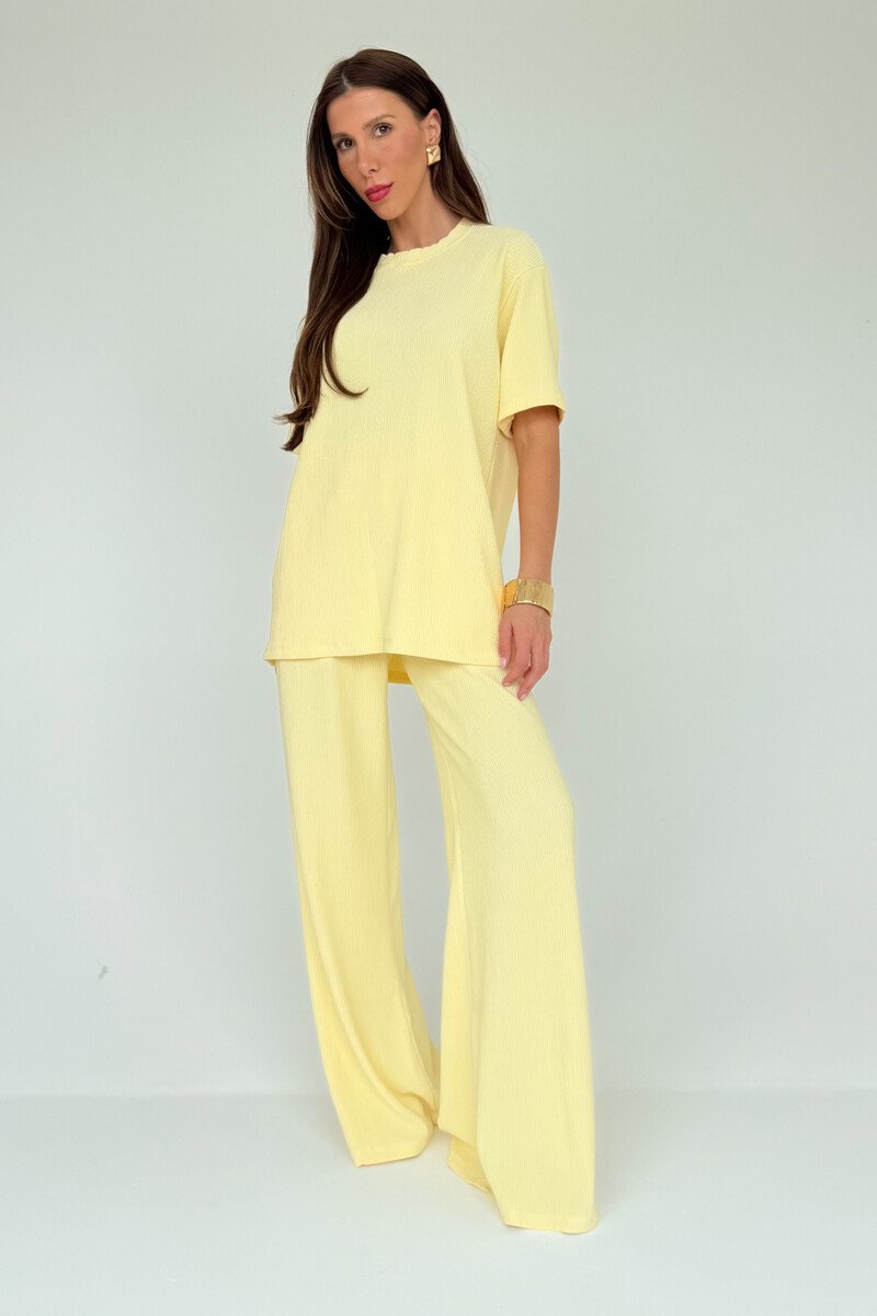 Esse conjunto une estilo e praticidade em uma proposta moderna e cheia de atitude. A blusa oversized com mangas e comprimento alongado traz aquele visual despojado-chique que a gente ama ? perfeita para quem curte conforto sem abrir mão do estilo.