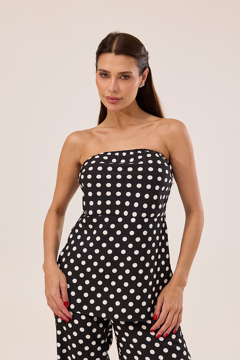 Clássico, atemporal e irresistivelmente feminino, nosso tomara que caia em estampa de poá é uma combinação perfeita de charme retrô e toque contemporâneo. Com a leveza da modelagem tomara que caia e as roupas divertidas das bolinhas, essa peça é um símbolo de estilo e sofisticação.