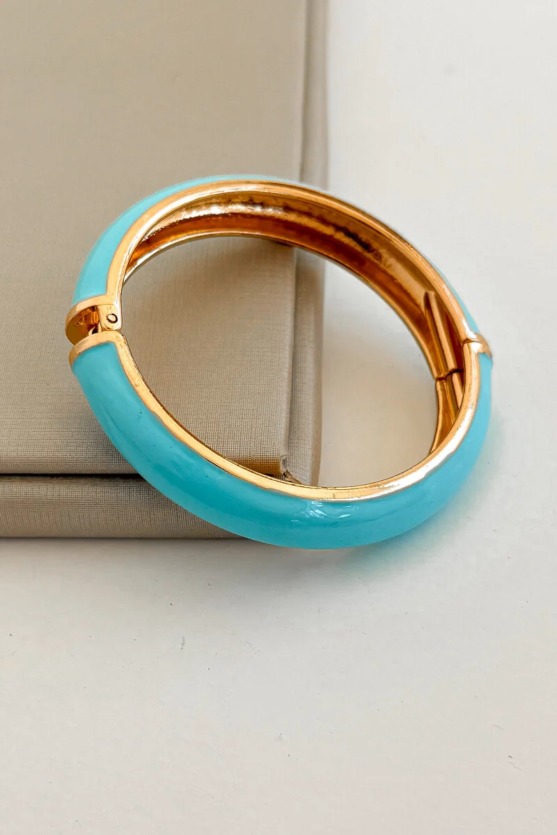 O bracelete é a escolha perfeita para quem busca um acessório marcante com sofisticação contemporânea. Seu design clean ganha destaque pelo contraste elegante entre o esmalte polido e o acabamento dourado, criando uma peça moderna, feminina e extremamente versátil. Com abertura em pinça, ele envolve o pulso com conforto e presença, elevando qualquer produção com um toque de cor refinado.