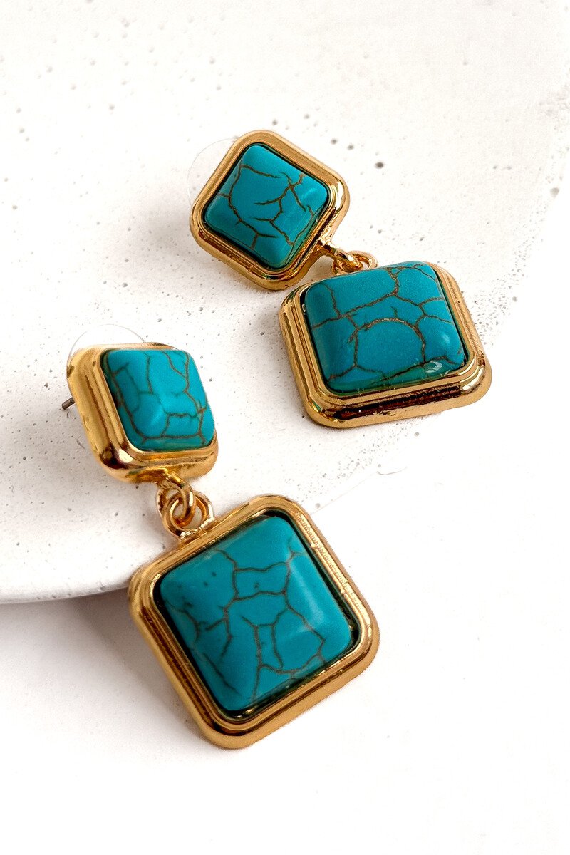 O Brinco Quadrado ANITA com Pedra Turquesa é uma peça sofisticada e contemporânea, perfeita para quem ama acessórios marcantes com acabamento refinado. Composto por dois quadrados emoldurados em dourado e preenchidos com pedra turquesa marmorizada, ele traz um visual moderno com inspiração natural.