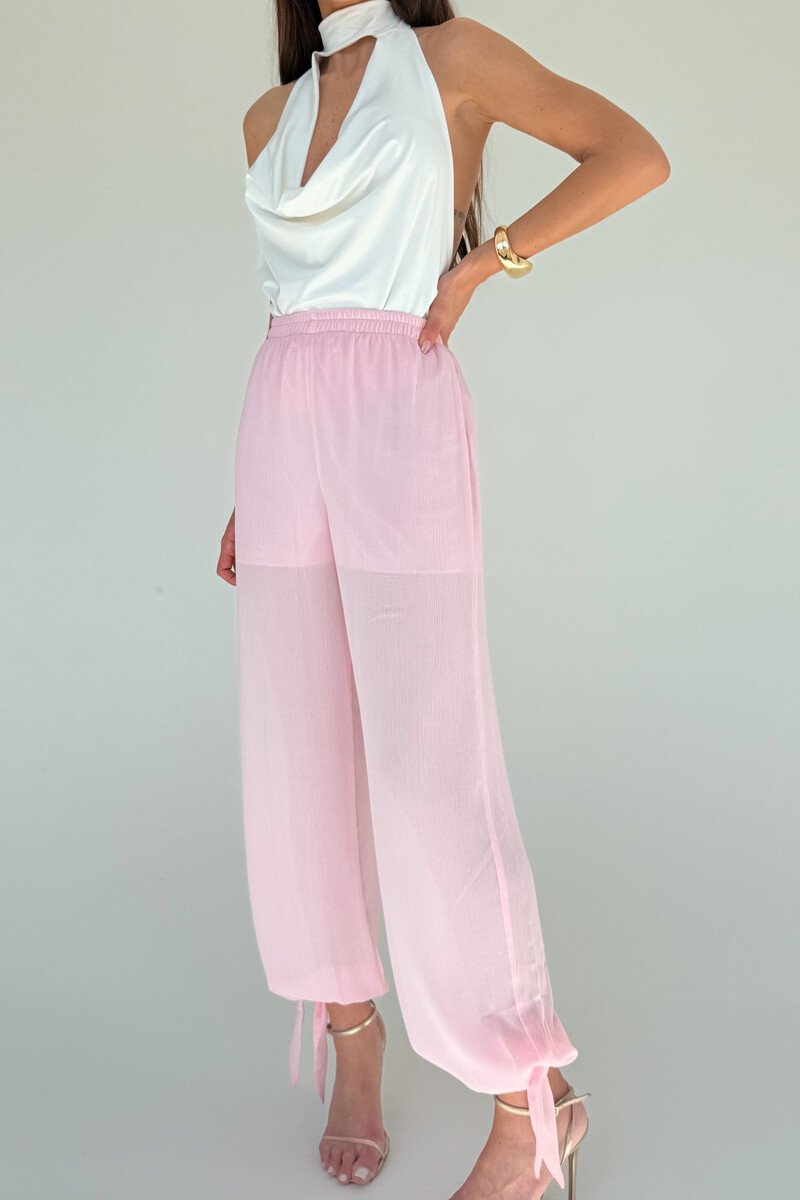 Com toque leve e caimento fluido, essa calça aladim é a escolha perfeita para looks elegantes e descomplicados. Sua modelagem soltinha proporciona conforto e movimento, enquanto o cós com elástico garante ajuste perfeito à cintura. Produzida em tulê leve e com toque macio, também traz um forro devido a transparecia.