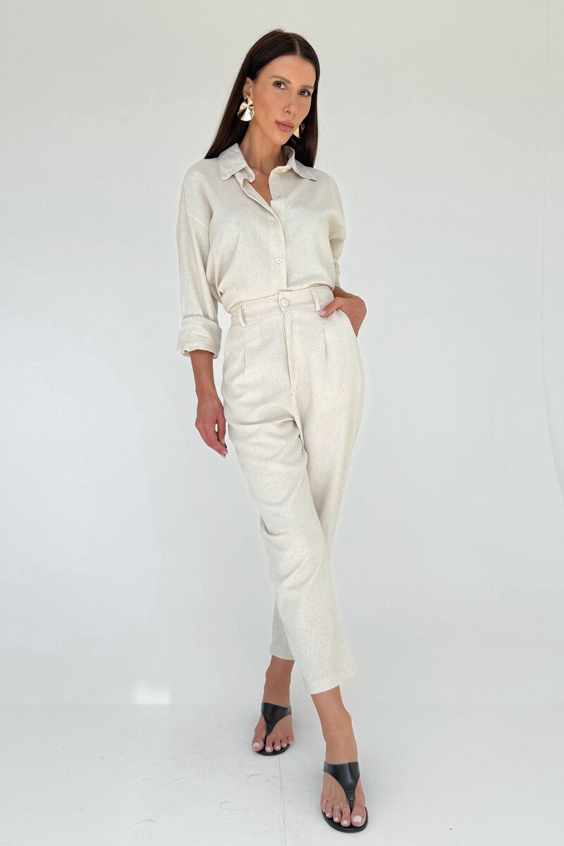 Combine com camisas fluidas, sandálias minimalistas ou croppeds estruturados para composições versáteis, modernas e naturalmente estilosas.