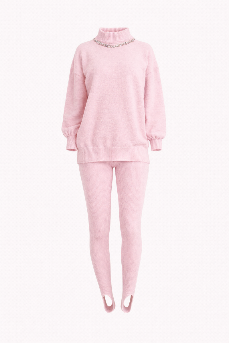 Desenvolvido e produzido exclusivamente pela Femme em tricô de toque macio, o conjunto é composto por blusa de manga longa com modelagem confortável e calça de pézinho ajustada com acabamento diferenciado, proporcionando um visual equilibrado entre aconchego e sofisticação.