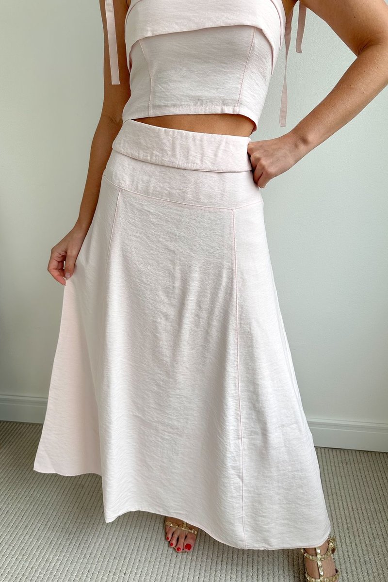 Saia midi de cintura altaem estilo alfaiataria, projetada para unir elegância e praticidade com um design atemporal. O cós apresenta largura média com detalhe dobrado, adicionando um toque refinado e estruturado à peça.