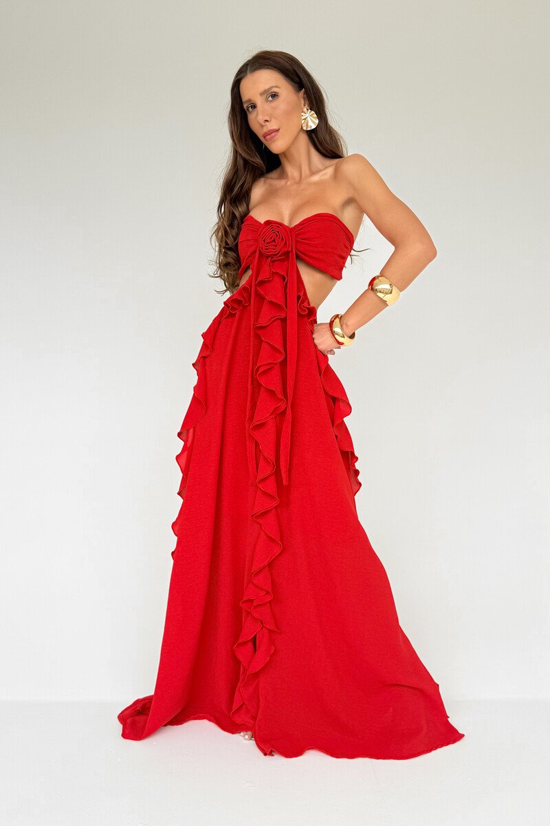 O Vestido Longo Flora é a tradução perfeita do romantismo moderno. Uma peça que une delicadeza e presença, trazendo o equilíbrio perfeito entre suavidade e impacto.