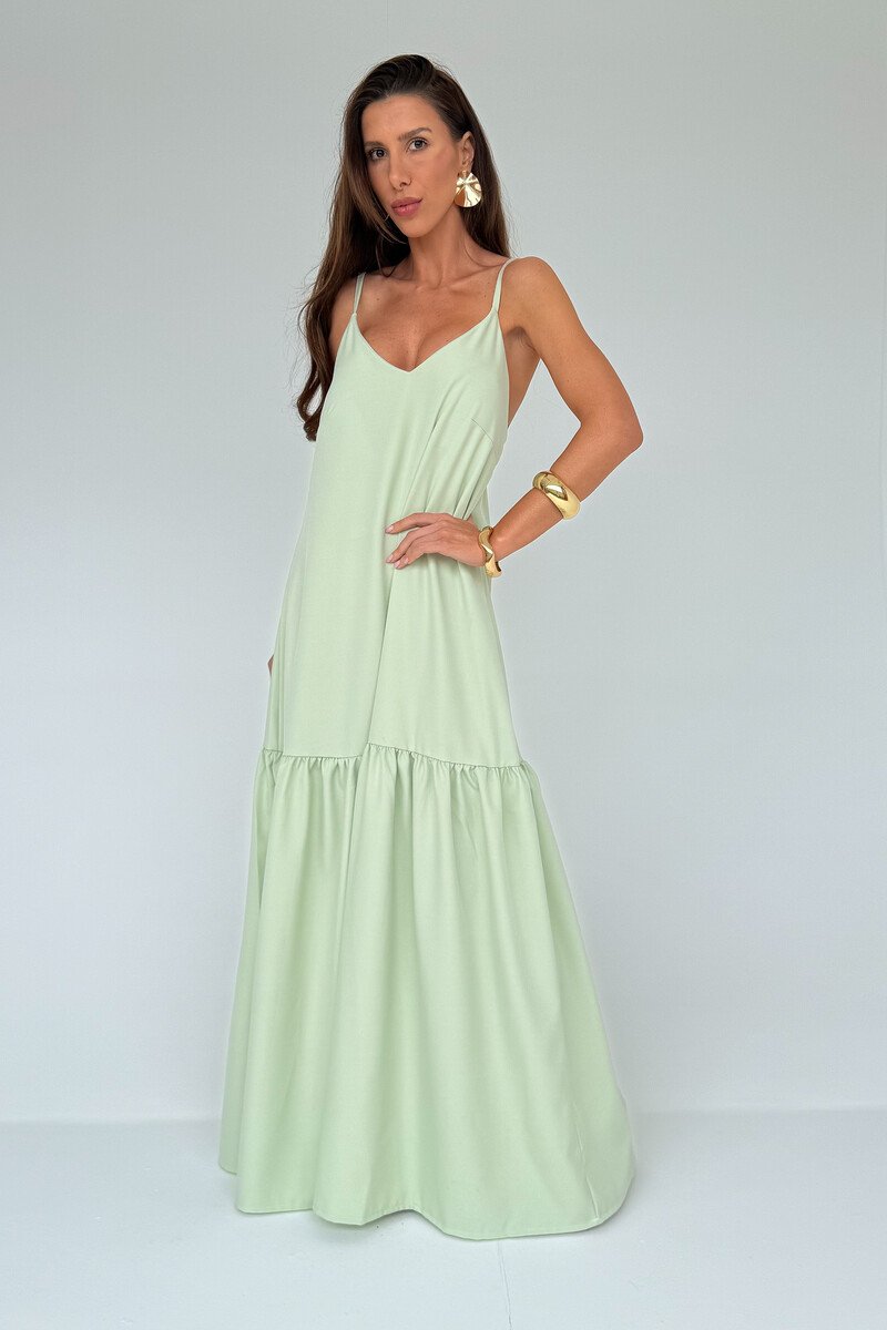 O vestido longo conta com tronco alongado, garantindo um visual elegante e que valoriza a silhueta. Sua saia tem movimento leve e fluido, criando um caimento suave e sofisticado a cada passo.