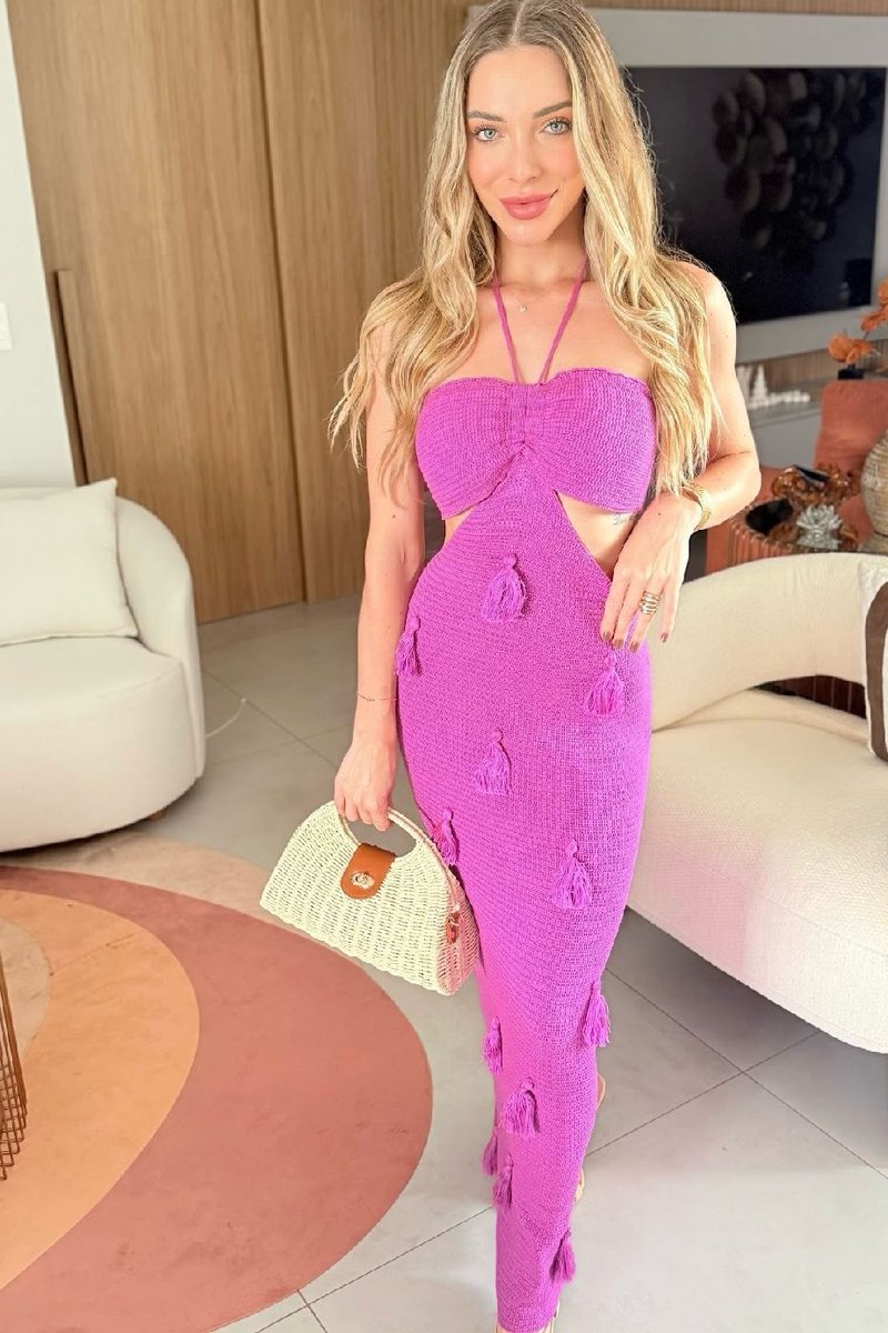 Vestido de tricô com detalhes encantadores, pensado para mulheres que apreciam sofisticação e versatilidade. Sublime uma peça que representa algo extraordinário, impecável e único. A saia apresenta tassels delicados que conferem movimento e um toque artesanal ao design, tornando um peça cheia de personalidade.
